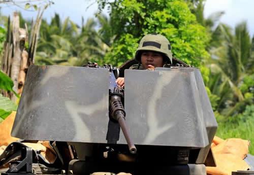 A government soldier atop an armored personnel carrier is posted the main highway in Pantar town, Lanao del Norte, May 24, 2017.