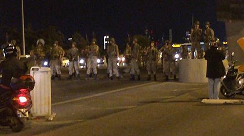 Two bridges in Istanbul are closed in one direction by the military. Cars are flowing from the European side of the city to the Asian, but soldiers and military vehicles are blocking the path to the European side.