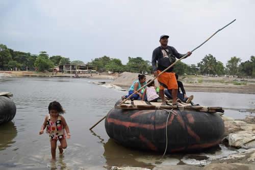A man waits for people on his makeshift raft bound to Guatemala (background) at the banks of the Suchiate river in Ciudad Hidalgo, Mexico, April 30 2017. Picture taken April 30, 2017.