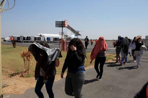 FILE PHOTO: Deportees cross the tarmac after arriving on an immigration flight from the U.S. at the Oscar Arnulfo Romero International Airport in San Luis Talpa, El Salvador, January 27, 2017.