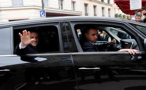 Emmanuel Macron, head of the political movement En Marche !, or Onwards !, and candidate for the 2017 presidential election, he leaves his home during the second round of the election, in Paris, France, May 7, 2017.