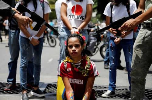 Demonstrators perform during a rally against Venezuela’s President Nicolas Maduro’s government in Caracas, Venezuela June 27, 2017.
