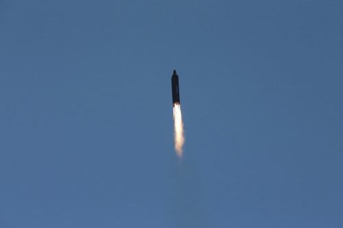 This May 14, 2017, photo distributed by the North Korean government shows the Hwasong 12, a new type of ballistic missile, as it is launched from an undisclosed location in North Korea. Many analysts believe the missile could be a stepping stone to the ICBM North Korea needs to attack the U.S. mainland. Independent journalists were not given access to cover the event depicted in this photo.