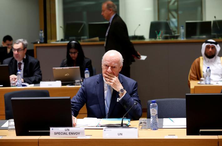 UN Special Envoy for Syria Staffan de Mistura waits for the start of an international conference on the future of Syria and the region, in Brussels, Belgium, April 5, 2017.