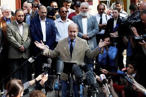 Fawzi Haffar, a trustee at the Didsbury mosque, speaks to journalists outside the mosque in Manchester, Britain, May 24, 2017.