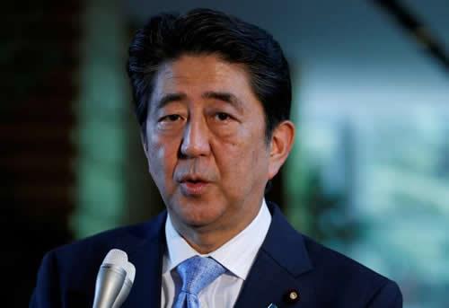 Japan’s Prime Minister Shinzo Abe speaks on reports of the launch of a North Korean missile to reporters, at his official residence in Tokyo, Japan May 14, 2017.