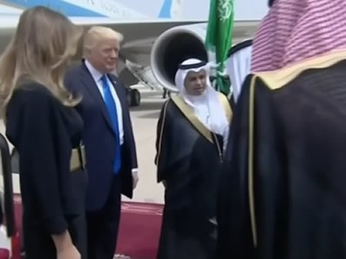 Trump waved from the doorway after Air Force One touched down and before descending the staircase with first lady Melania Trump. The 81-year-old King Salman, who used a cane for support, was brought to the steps of the plane in a golf cart. The leaders exchanged pleasantries and Trump said it was “a great honor” to be there.