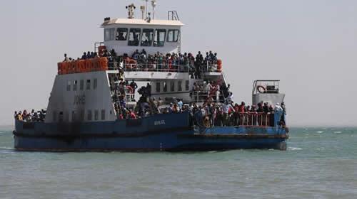 Returnees from Barra seen on arrival at Banjul Port a day after President Yahya Jammeh departed Banjul, Gambia for exile January 22, 2017.