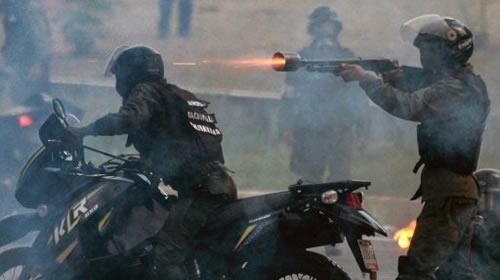 Bolivarian National Guard members shot rubber bullets at Venezuelan opposition demonstrators during a Thursday protest against President Nicolas Maduro