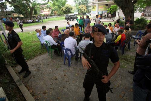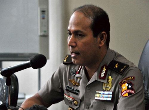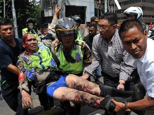 An injured Indonesian policeman ..